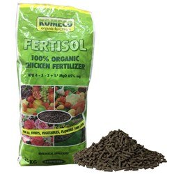 FERTISOL is 100% natuurlijk, heeft een gemiddelde N-P-K gehalte van 4-3-3 en bevat 62% organische stof.