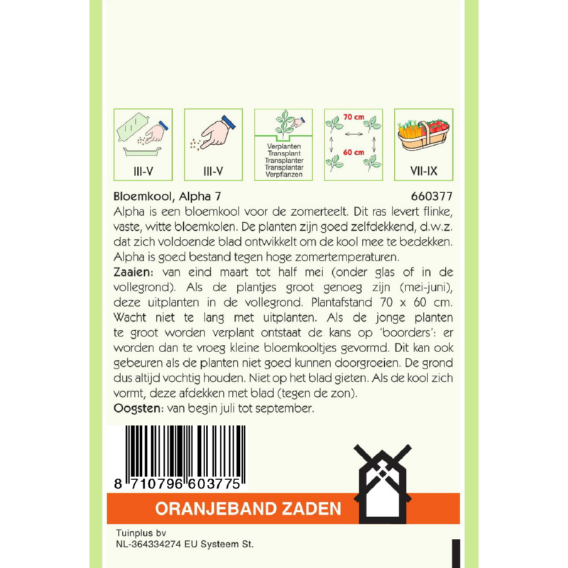 Bloemkool Alpha-7 1gr Oranjeband 660377