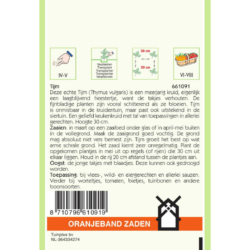Tijm 0.5gr Oranjeband 661091 Thymus Vulgaris